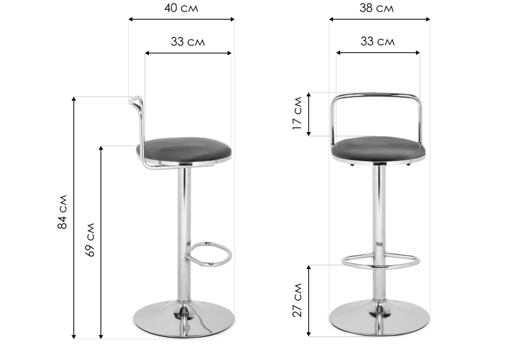 Высота подножки: 27 см. Материал каркаса - Металл; Материал сиденья - Велюр; Материал ножек - Металл; Материал обивки - Велюр; Цвет каркаса - Золотой; Цвет сиденья - Серый; Цвет ножек - Золотой; Цвет обивки - Серый; Ширина - 38; Глубина - 40; Высота - 84; Ширина сиденья - 33; Глубина сиденья - 33; Высота сиденья - 69;