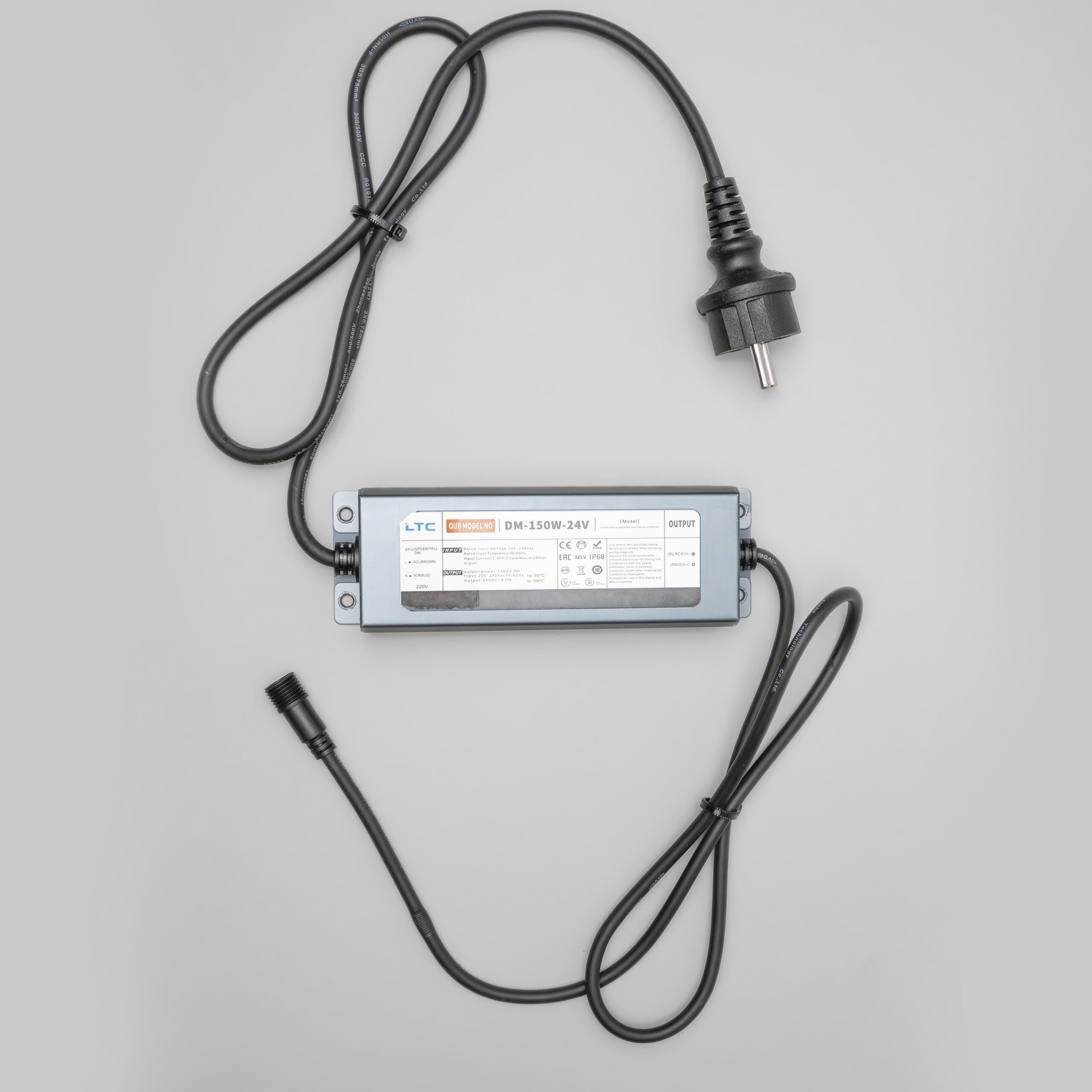 Блок Питания Электронный 150W для Нитей 24В, до 2000 LED, Провод Черный Каучук, IP65 LTC DM-150F-24V в Ялте