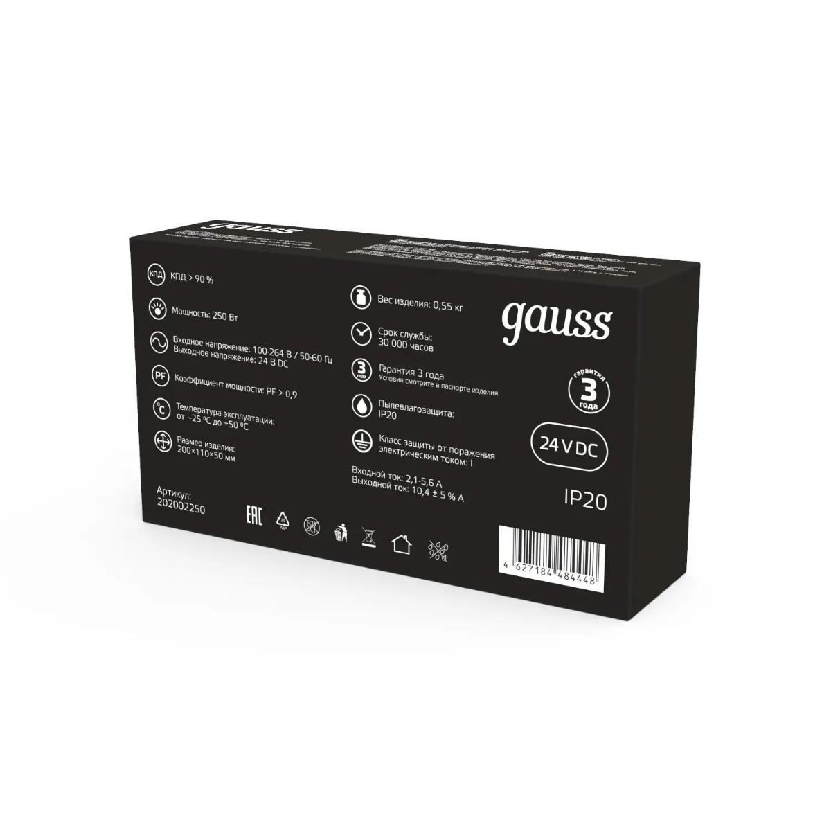 Купить "Блок питания Gauss 250W 24V IP20 202002250"