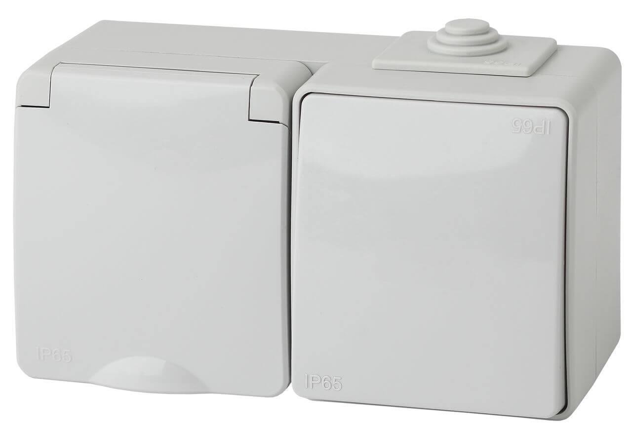 Купить "Блок розетка-выключатель ЭРА Эксперт IP65 16A 250V 11-7601-03 Б0035993"