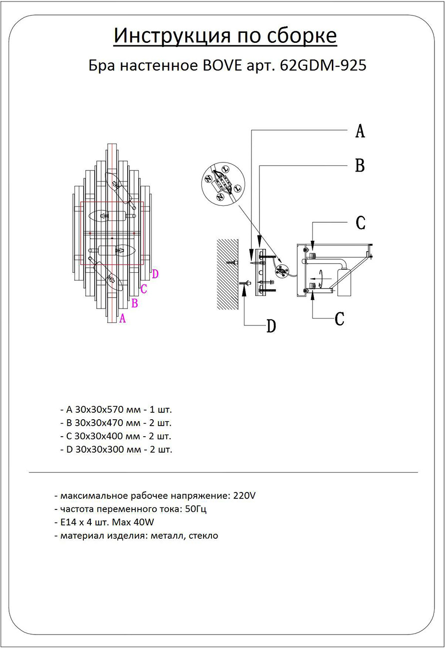 - Количество ламп: 4 шт