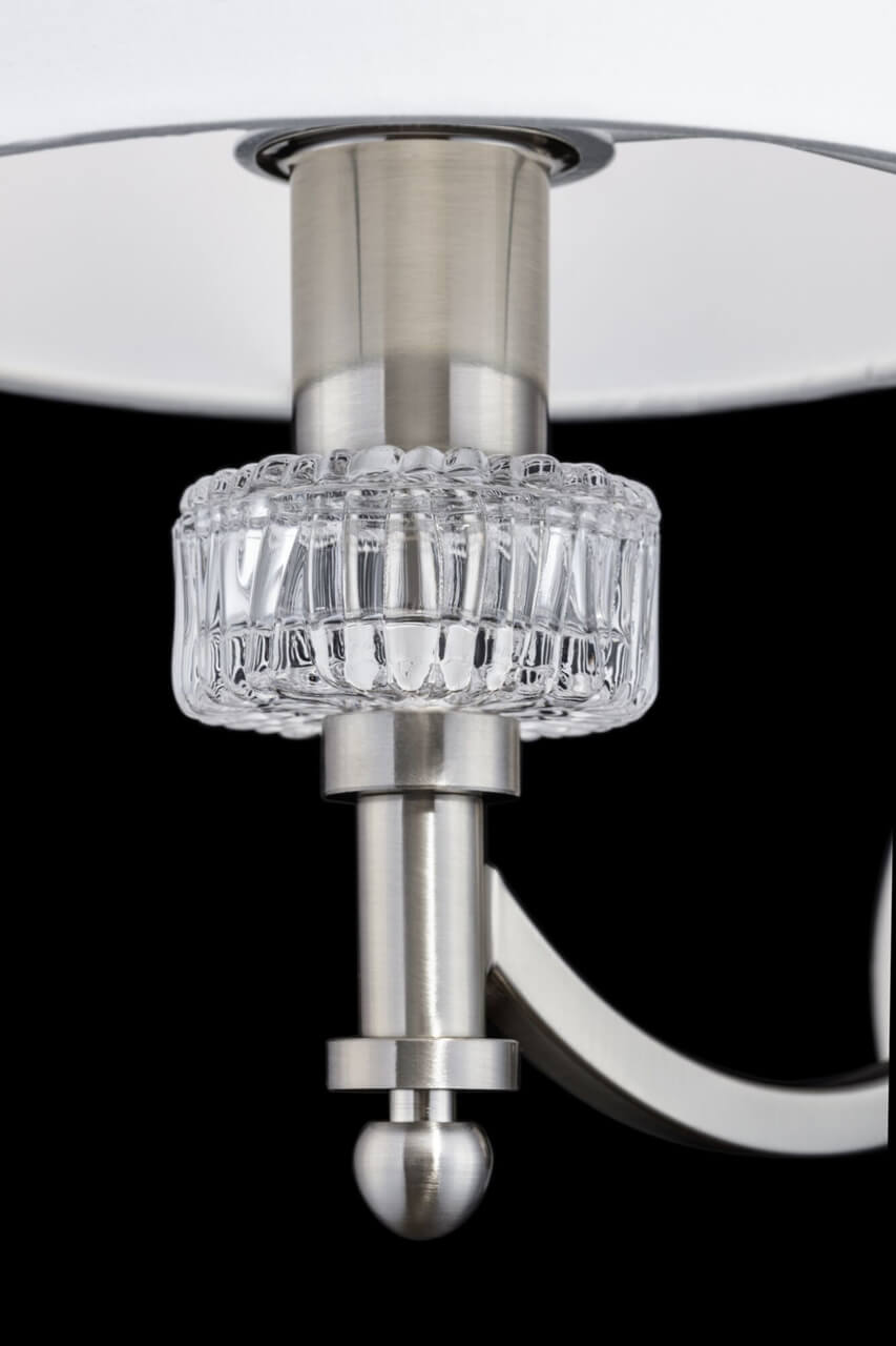 Бра Maytoni Alicante MOD014WL-01N, входящая в коллекцию Neoclassic, отлично подойдет для освещения пространства в гостиной, в спальне, на даче, в кабинете, оформленных в классическом стиле или в стиле Модерн. Данный артикул имеет один абажур диаметром 17 см и высотой 12,5 см белого цвета в форме цилиндра, выполненного из текстиля и направленного вверх, а также матовую никелированную арматуру, при этом глубина расположения светильника от стены равна 26 см. Немецкий производитель Maytoni дает гарантию на свое изделие 2 года и рекомендует использовать для устройства энергосберегающие лампы или лампы накаливания с цоколем Е14 и мощностью 40 Вт, что позволяет осветить помещение площадью 2,2 кв. м. Изюминкой настенного светильника является украшение в виде фактурного стеклянного кольца, расположенного на арматуре под абажуром. Способ крепления светильника к стене на планку позволяет быстро и просто осуществить монтаж. Строгий дизайн, наличие декоративных элементов и матовая белая поверхность абажура бра Maytoni Alicante MOD014WL-01N делают ее особенным элементом декора, который украсит любое интерьерное пространство.