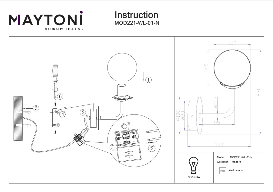 Бра Maytoni Erich MOD221-WL-01-N в Ялте