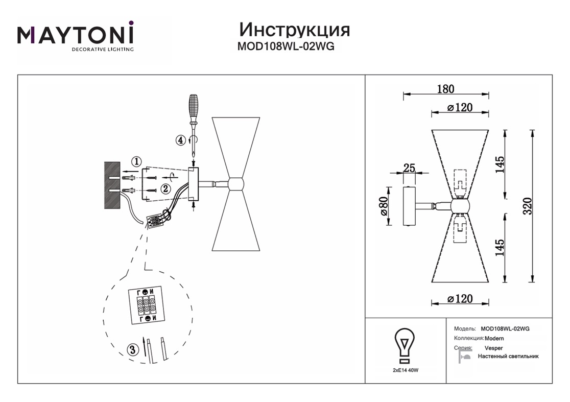 Бра Maytoni Vesper MOD108WL-02WG в Ялте