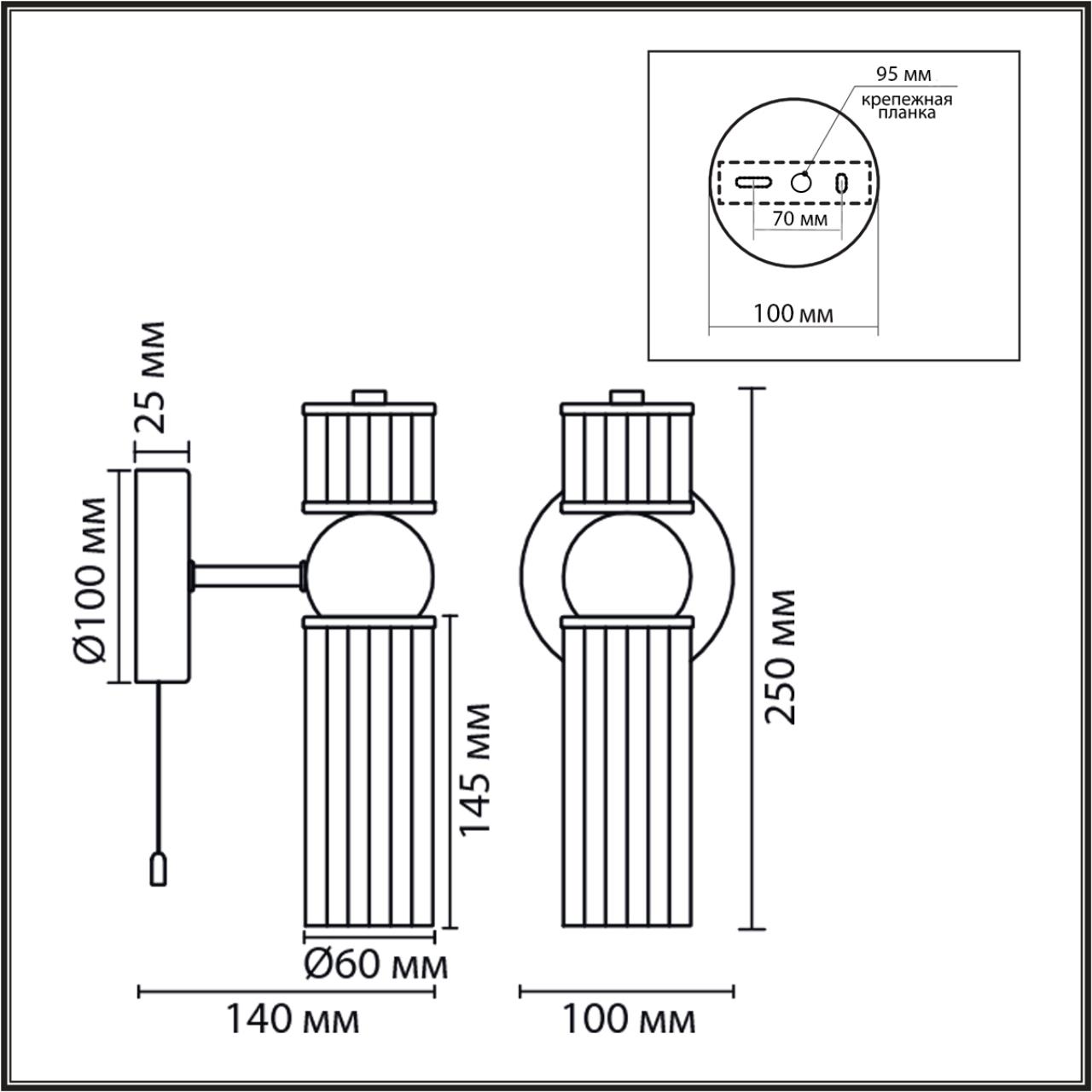 - Цвет плафонов: Прозрачный