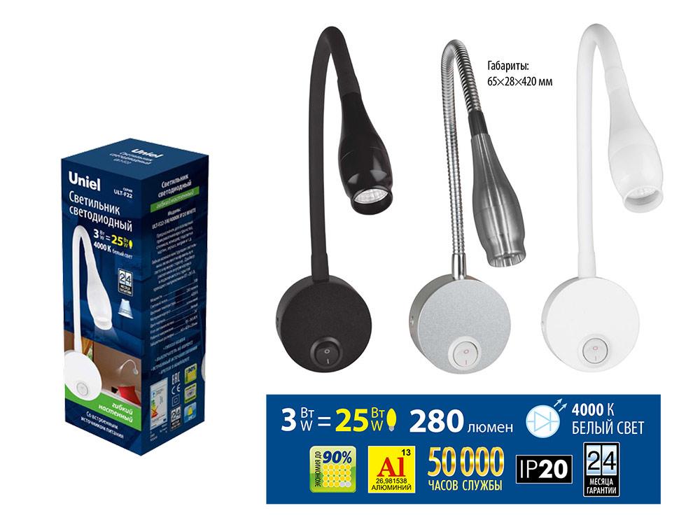 Купить "Бра (UL-00004241) Uniel ULT-F22-3W/4000K IP20 Silver"