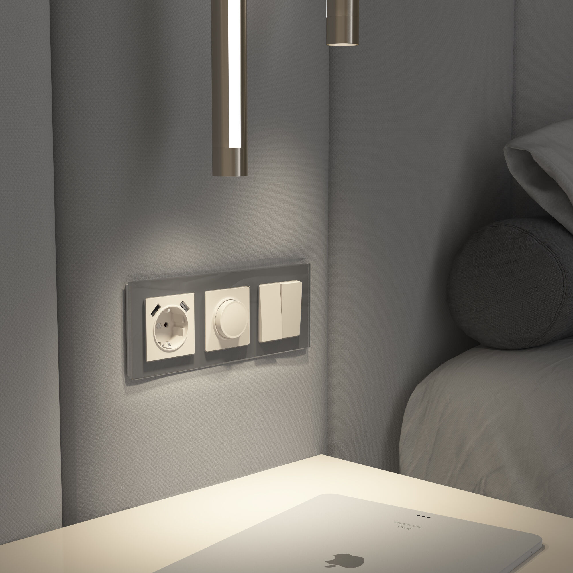 Диммер предназначен для изменения уровня яркости света. Поворотная кнопка регулирует интенсивность светового потока. Включение и выключение производится нажатием на кнопку. Диммер совместим со светодиодными диммируемыми лампами и лампами накаливания.