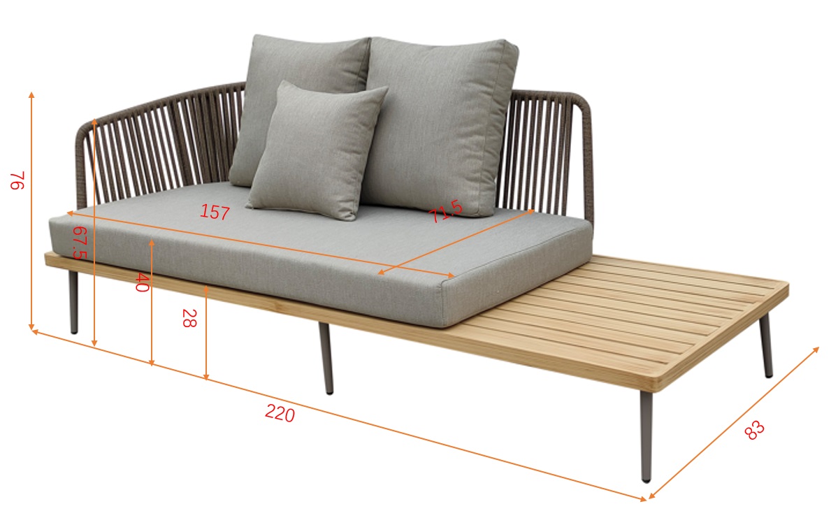 Уличный диван изготовлен из устойчивых к погодным условиям материалов. Cъемные подушки выполнены из специальной уличной ткани с водоотталкивающими свойствами OLEFIN тайваньского производства. Светлая ткань не будет сильно нагреваться на солнце и выцветать...