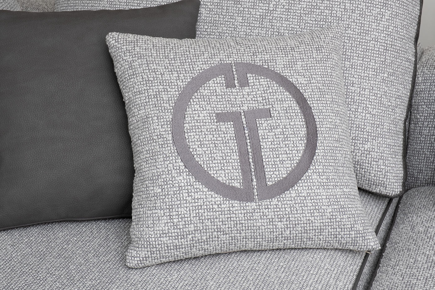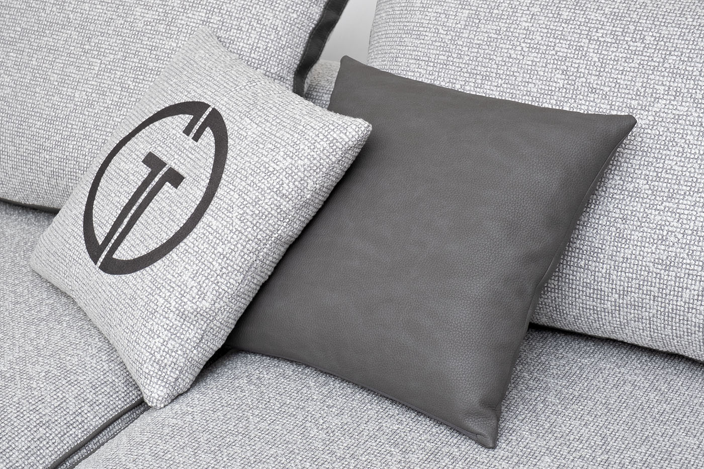 Комплект №44 модульного дивана TESORO угловой В состав комплекта входит: модуль угловой правый DR+P - 1шт в ткани Santo1400-SVSER с кантом иск.кожа NEVADA 93; модуль прямой DO+P - 1шт в ткани Santo1400-SVSER с кантом иск.кожа NEVADA 93; подушки спинки 5 шт - в ткани Santo1400-SVSER с бурлетом иск.кожа NEVADA 93; декоративные подушки 45*45см 2 шт в иск.коже NEVADA 93; декоративные подушки 45*45см с вышивкой GD эмблема - 2шт в ткани Santo1400-SVSER; Металлические опоры 180мм - черные. Все модули могут скрепляться между собой в модульный диван , а также использоваться как самостоятельное изделие. Декоративные подушки в стандартный комплект дивана не входят, необходимо заказывать дополнительно. Габариты модульного дивана: длина - 380см; ширина- 295см; глубина - 110см,высота- 900см