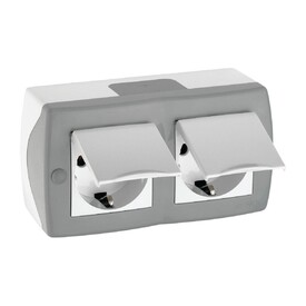Розетка 2К+З двойная Mono Electric Octans IP54 16A 250V с крышкой винтовое подключение бело-серый 154-020007-120