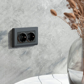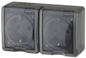 Розетка двойная влагозащищенная с заземлением с защитной крышкой и шторками Werkel серебряный W1172206 4690389178085