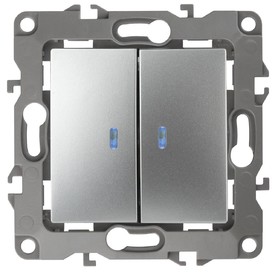 Выключатель двухклавишный с подсветкой ЭРА 12 10AX 250V 12-1105-03 Б0014659