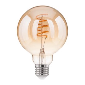 Филаментная светодиодная лампочка с цоколем E27 и размерами 141 мм по высоте и 64 мм в диаметре обладает мощностью 5W. Цветовая температура – 2700 К, т.е. теплый свет близкий к цвету Солнца. Ориентировочный срок службы составляет 50000 ч. Изделие рассчитано на использование в сети с переменным напряжением в 220-240В.