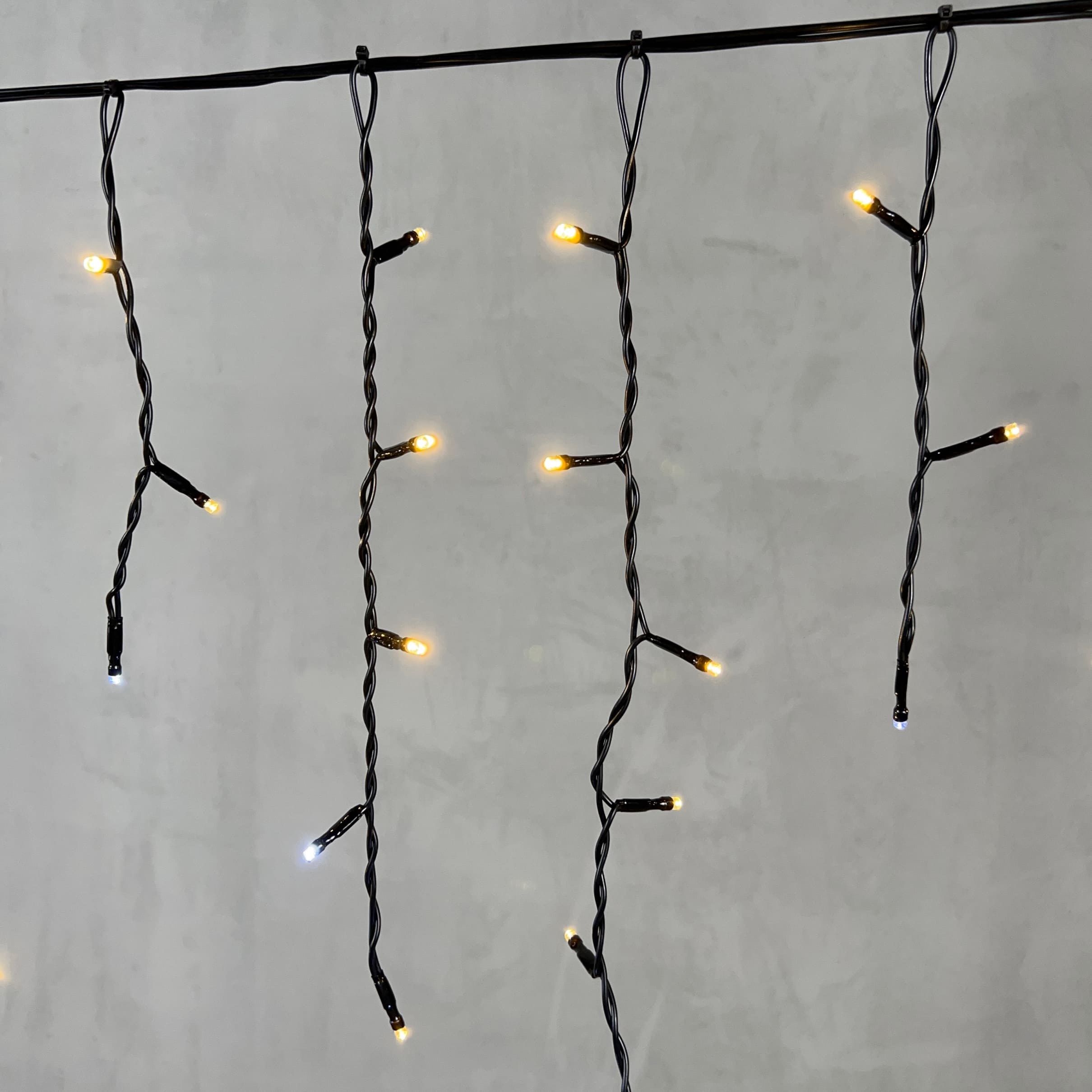 Гирлянда Бахрома 3, 1 x 0, 5 м Тепло-Белая с Мерцанием Белого Диода 220В, 150 LED, Провод Черный ПВХ, IP54 LTC PIL150BLW-11-2WW в Ялте