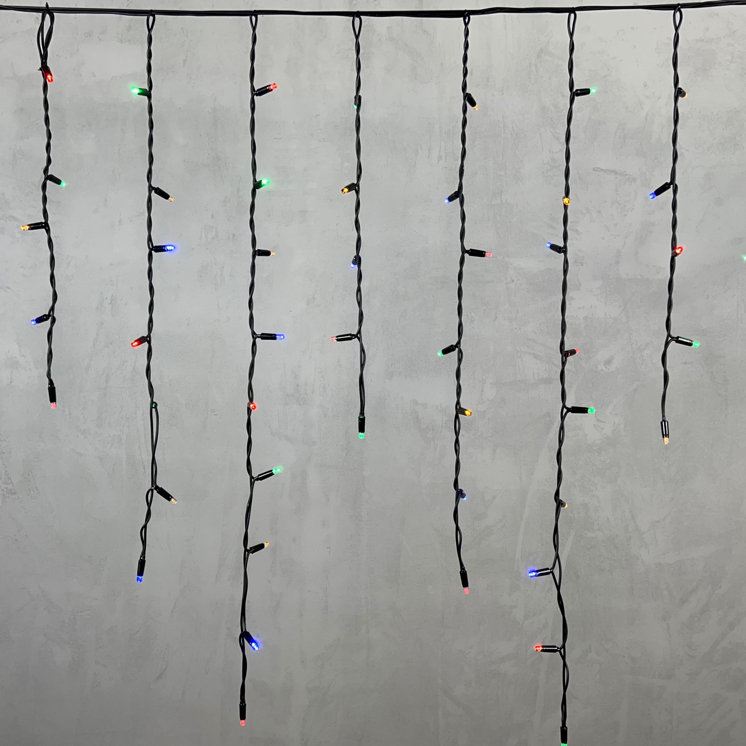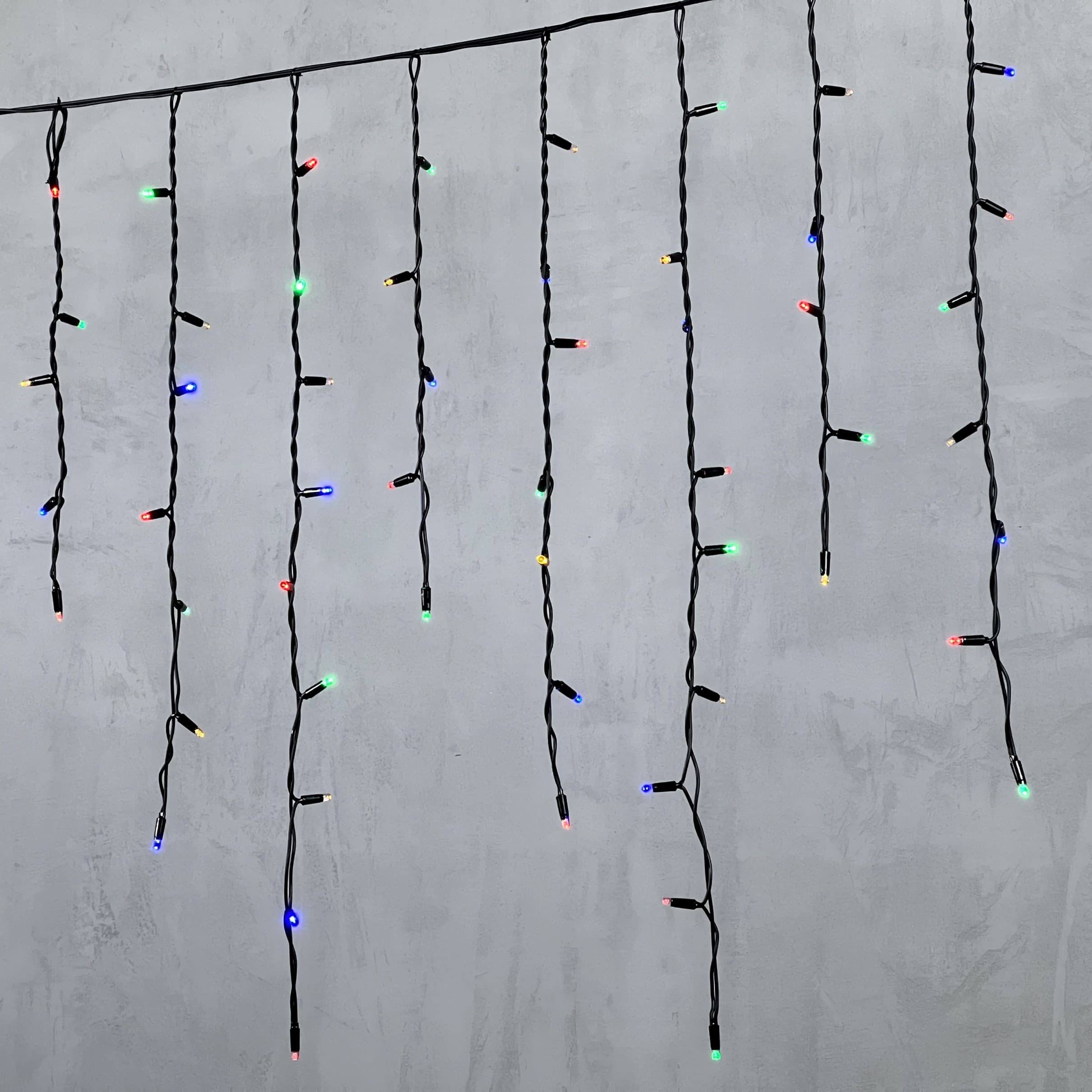 Гирлянда Бахрома 3, 2 x 0, 9 м Разноцветная 220В, 168 LED, Провод Черный Каучук, IP65 LTC LL168-1-2M в Ялте