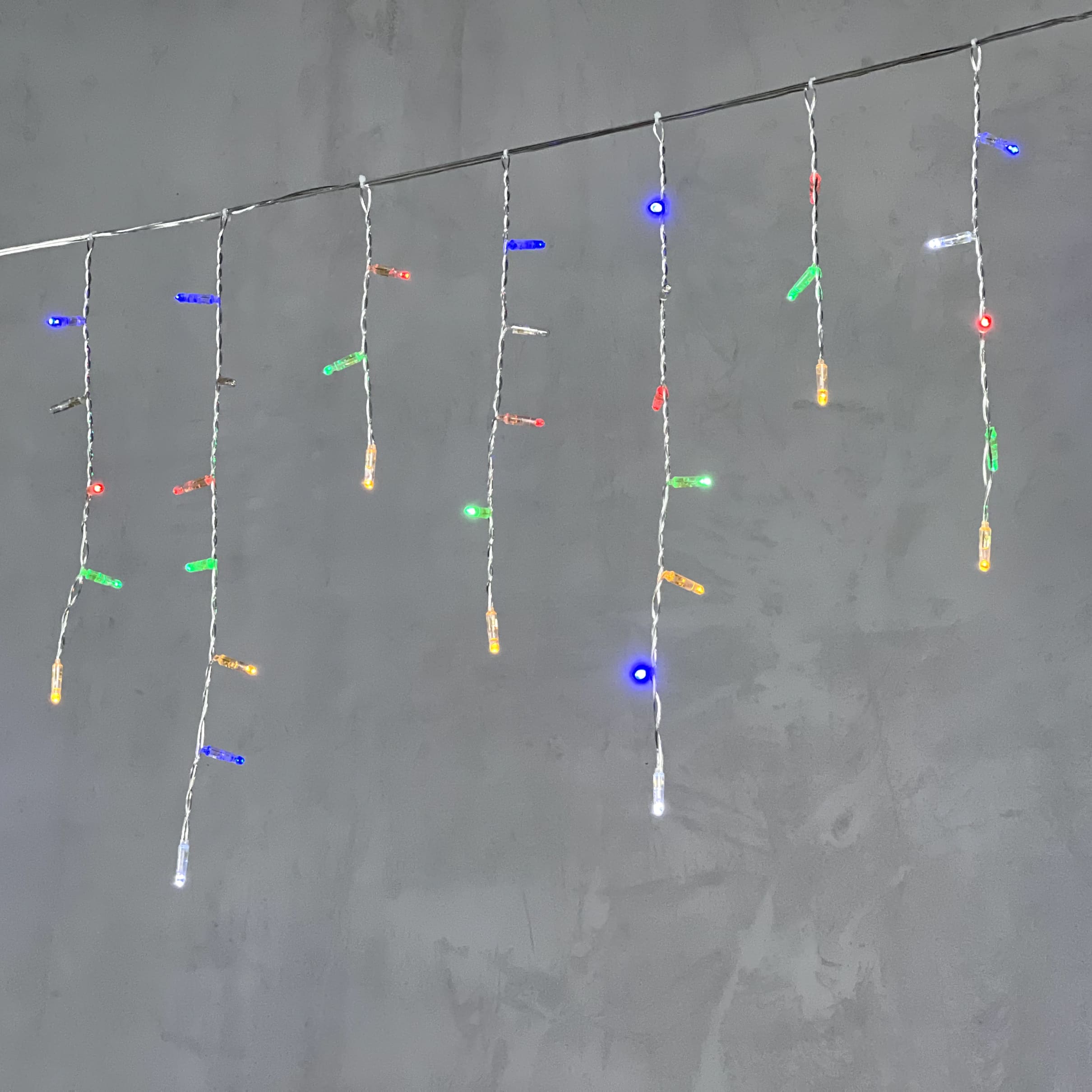 Купить "Гирлянда Бахрома с Калпочком 3,1 x 0,5 м Разноцветная с Мерцанием Белого Диода 220В, 120 LED, Провод Прозрачный Провод ПВХ, IP65 LTC PIL120BLWCAP-10-2M"