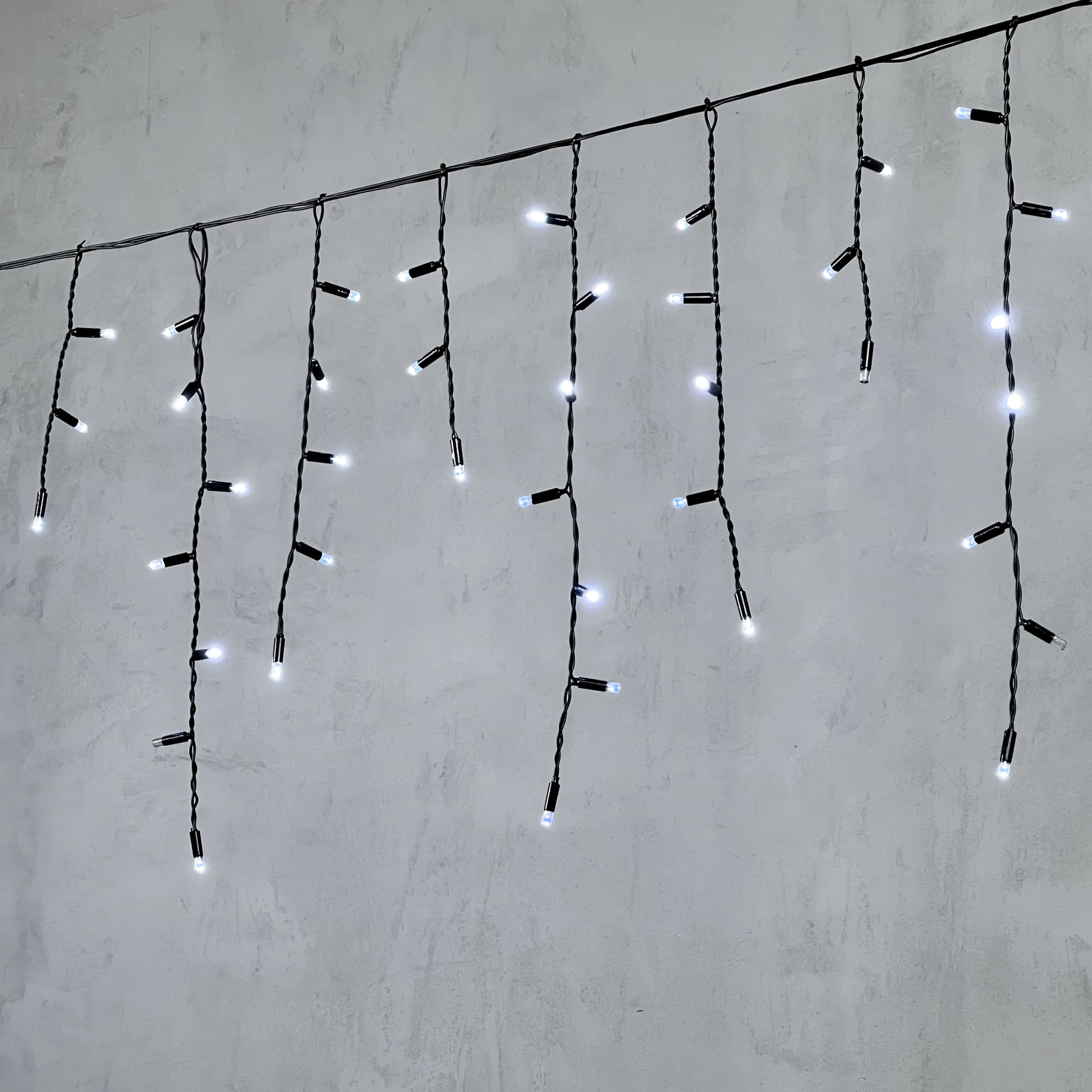 Гирлянда Бахрома с Колпачком 3, 1 x 0, 5 м Белая с Мерцанием Белого Диода 220В, 120 LED, Провод Черный ПВХ, IP65 LTC PIL120BLWCAP-11-2W в Ялте