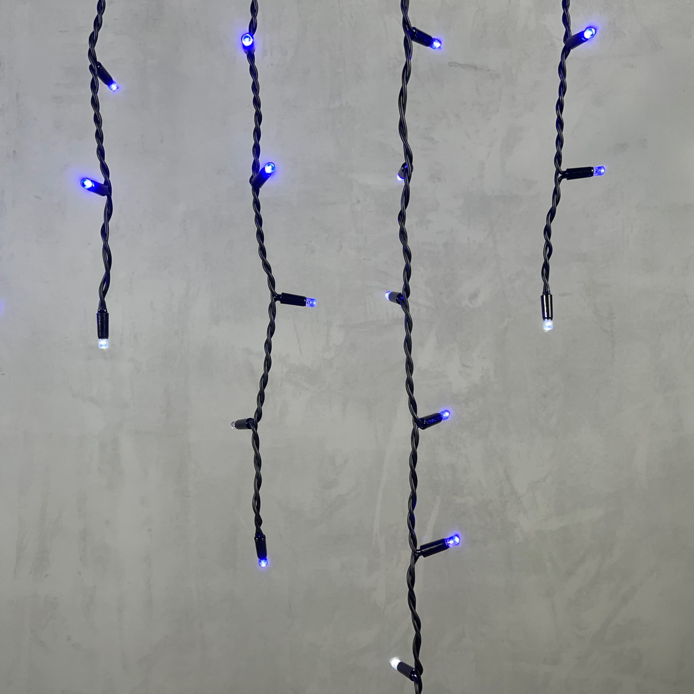 Гирлянда Бахрома 3, 2 x 0, 9 м Синяя с Мерцанием Белого Диода 220В, 168 LED, Провод Черный Каучук, IP65 LTC LL168BLW-1-2B в Ялте