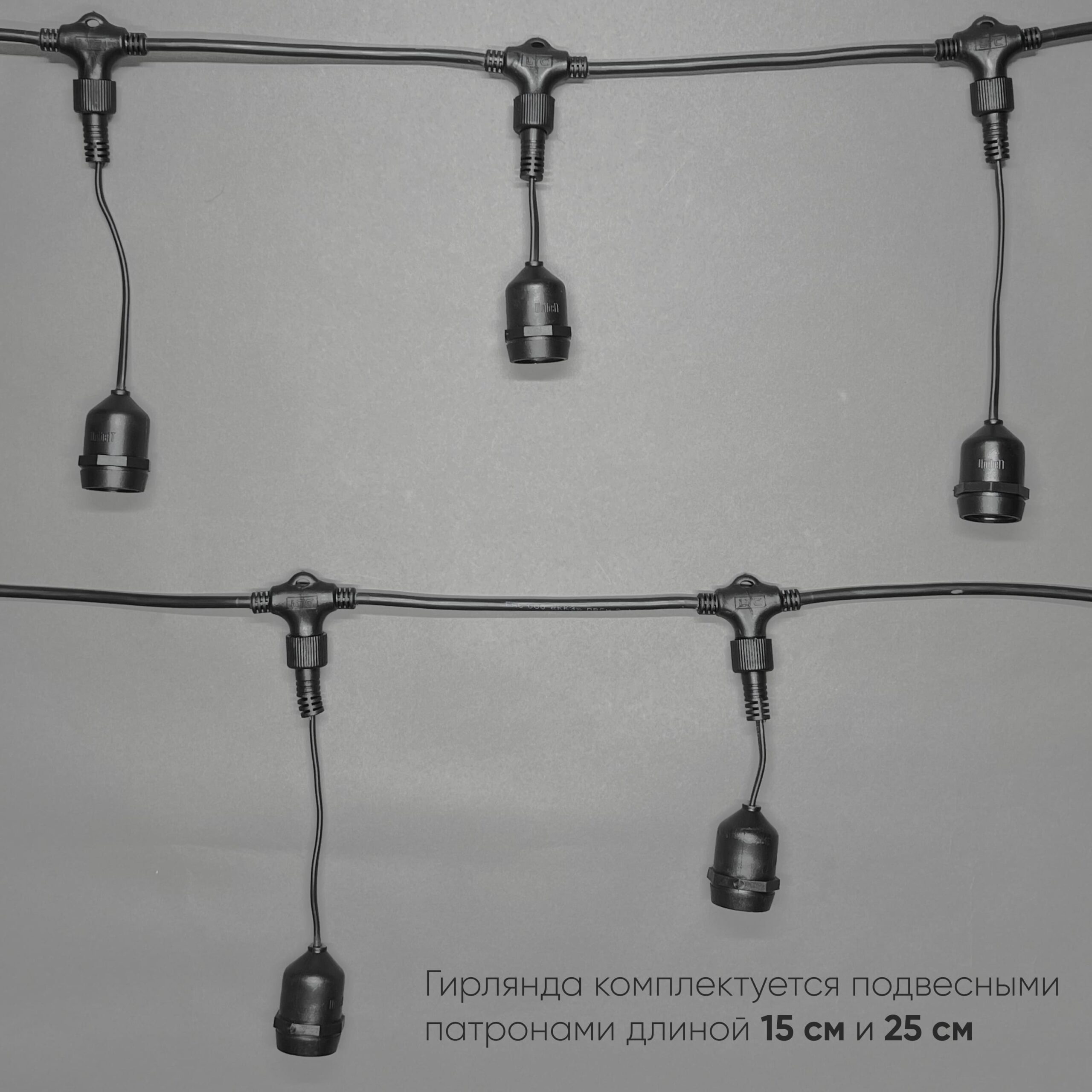 Белт-Лайт UNIBELT 10м, Провод Черный Каучук, Шаг 25 см, 40 Подвесных Патронов, IP65 LTC UBL10m/40L-1 в Ялте