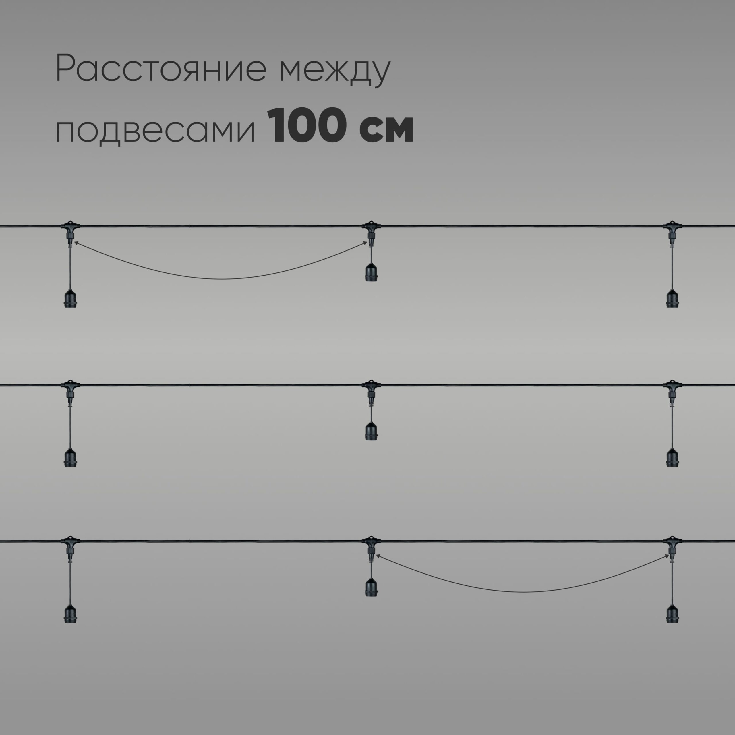 Белт-Лайт UNIBELT 5м, Провод Черный Каучук, Шаг 100 см, 5 Подвесных Патронов, IP65 LTC UBL5m/5L-1 в Ялте