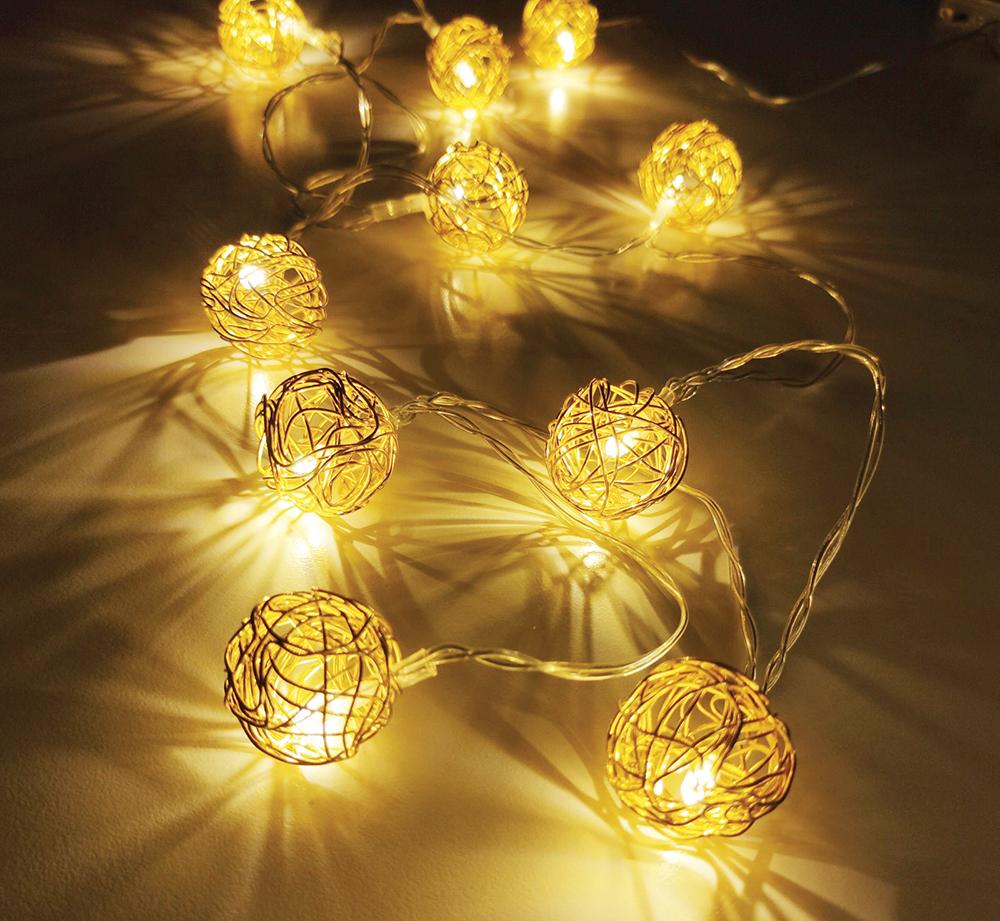 Купить "Гирлянда Feron CL594 линейная интерьерная Золотые шарики, статичная, 2700K, 1.8 м с питанием от батареек, прозрачный шнур 51450"