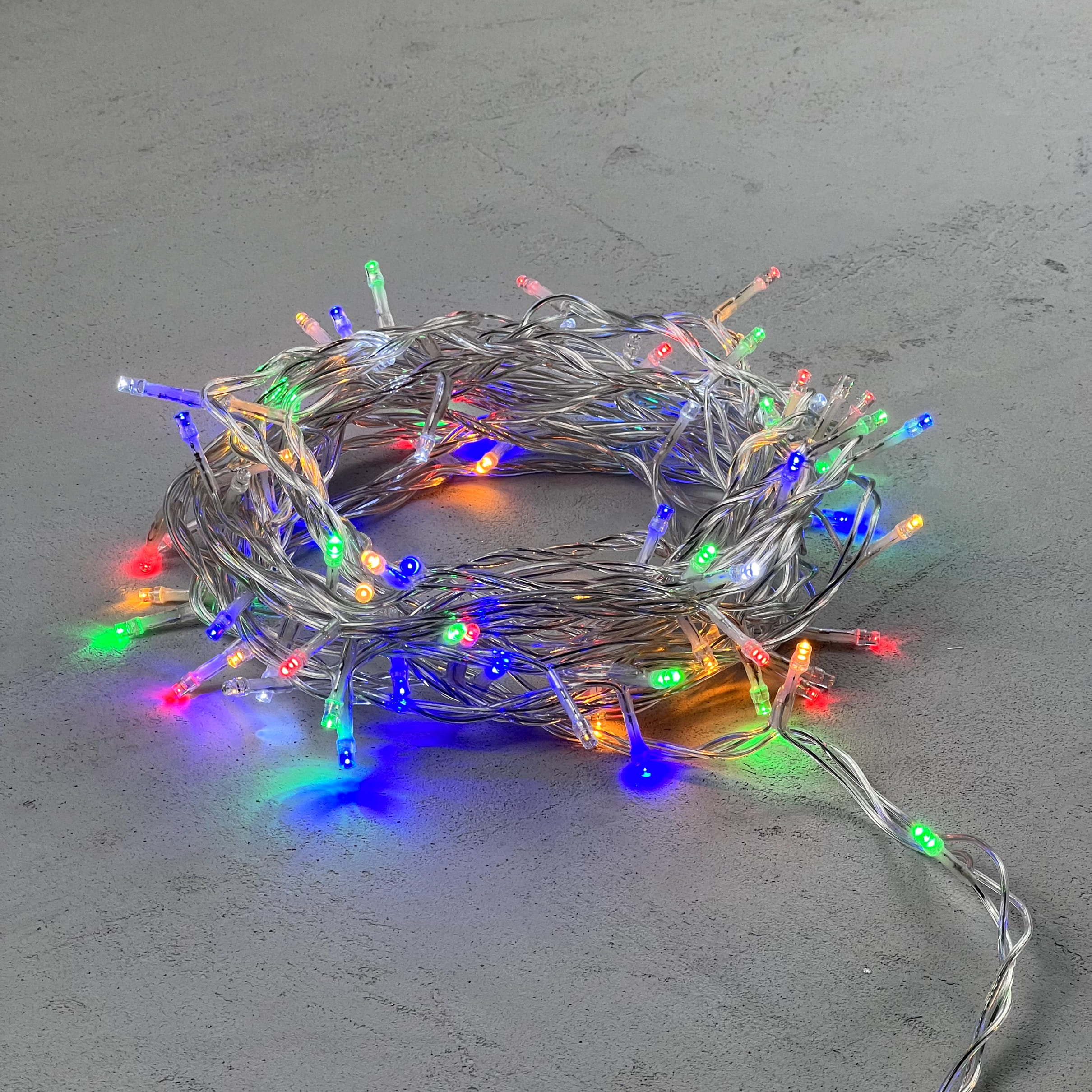 Купить "Гирлянда Нить 10м Разноцветная с Мерцанием Белого Диода 24В, 100 LED, Провод Прозрачный ПВХ, IP54 LTC PST100BLW-10-1M"
