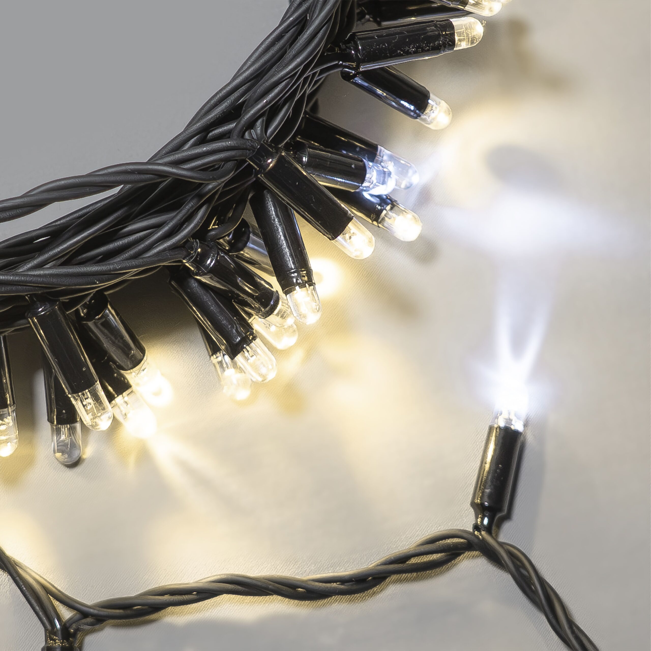 Купить "Гирлянда Нить 10м Тепло-Белая с Мерцанием Белого Диода 220В, 100 LED, Провод Черный Каучук 2,3мм, IP65 LTC ECO100BLW-1-2WW"