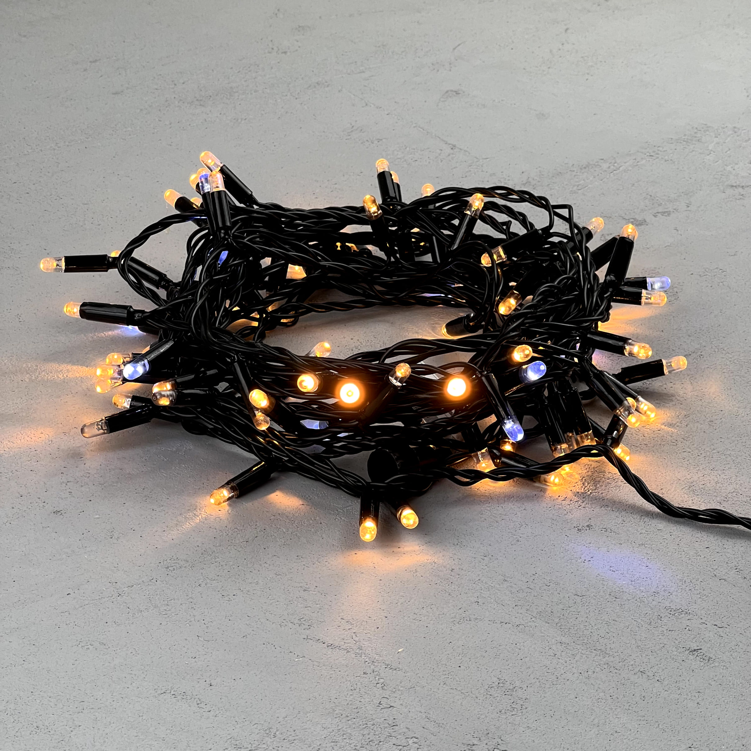 Купить "Гирлянда Нить с Колпачком 10м Экстра Тепло-Белая с Мерцанием Белого Диода 24В, 100 LED, Провод Черный ПВХ, IP65 LTC PST100BLWCAP-11-1EWW"