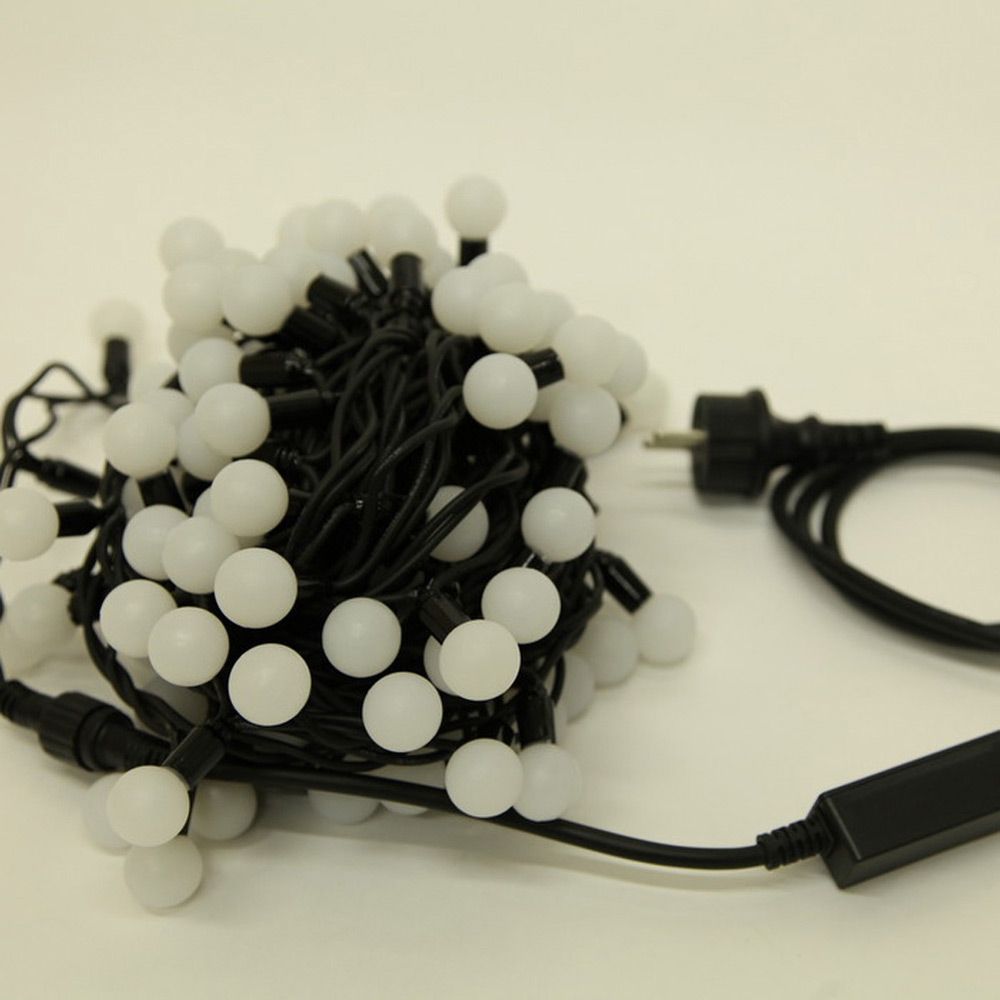 Гирлянда Нить, ШАРИКИ 2. 3см., 10м., 100 LED, холодный белый, без мерцания, резиновый черный ПВХ провод. 05-1979 в Ялте