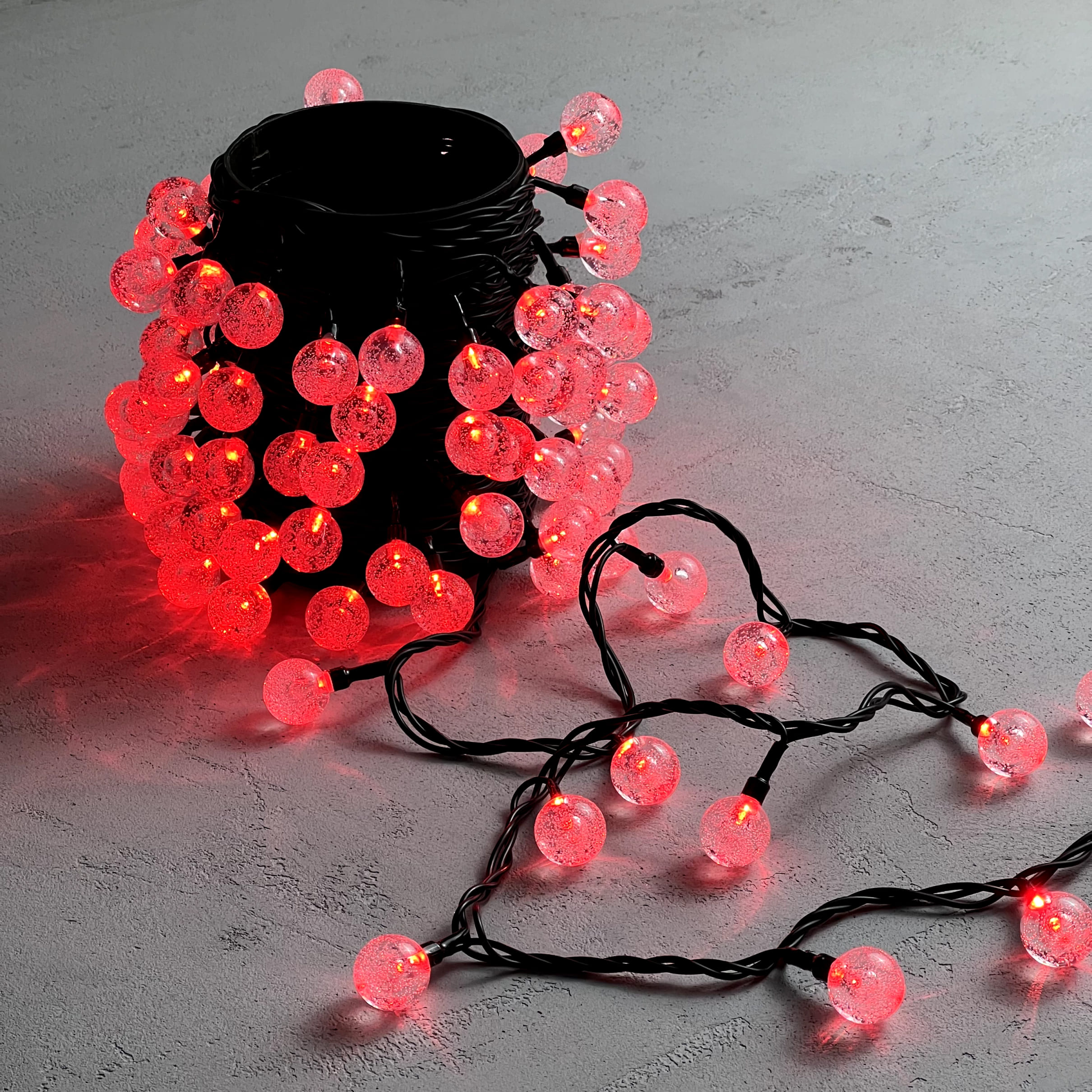 Купить "Гирлянда «Шарики» 10м Красная 220В, Диаметр Шарика 23мм, 100 LED, Провод Черный Каучук 2,3мм, IP54 LTC PCS-100B-R"