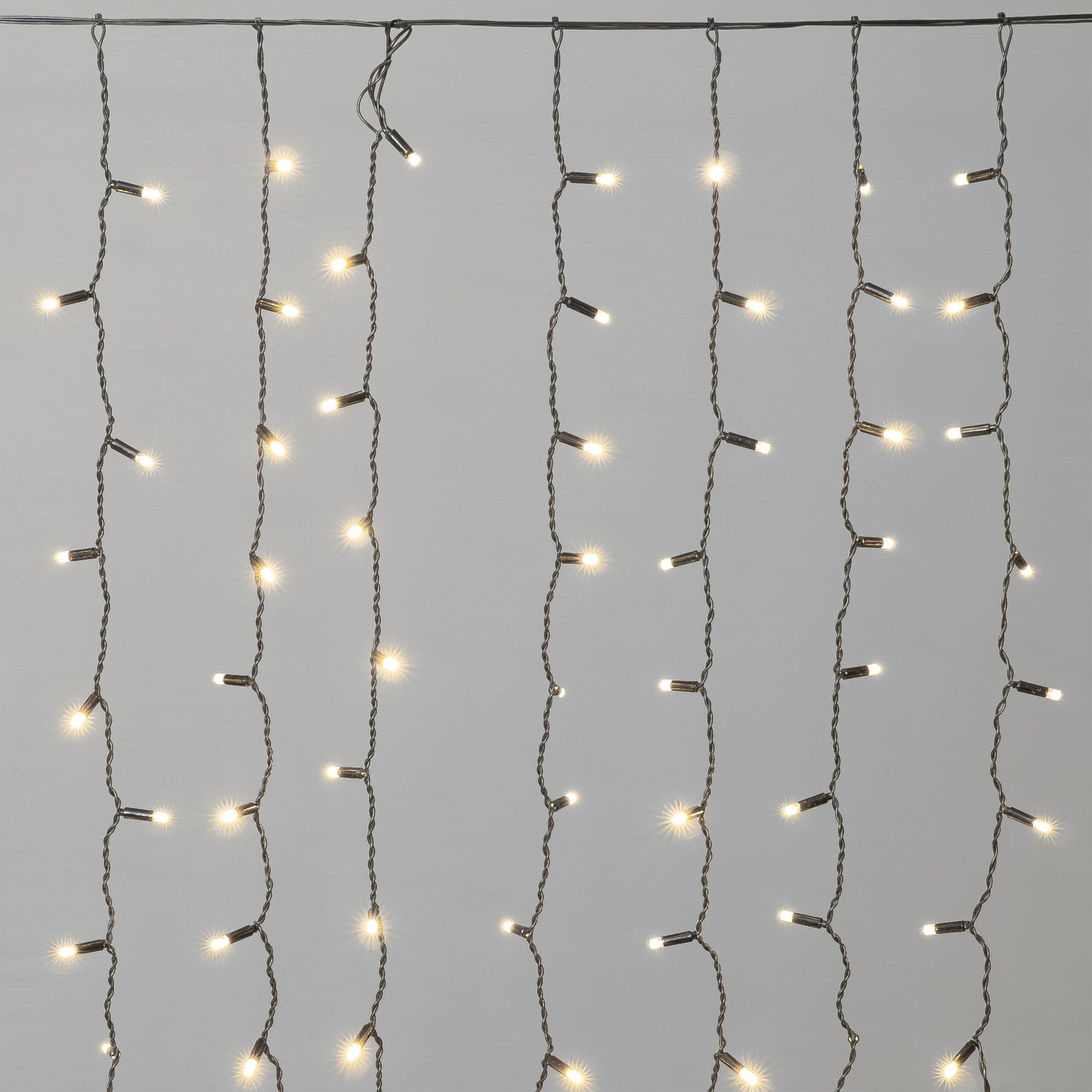 Купить "Гирлянда Занавес Облегченный c Колпачком 2 x 1 м Тепло-Белый 220В, 200 LED, Провод Черный Каучук 2,3мм, IP65 LTC ECO200NOT-1-2WW"