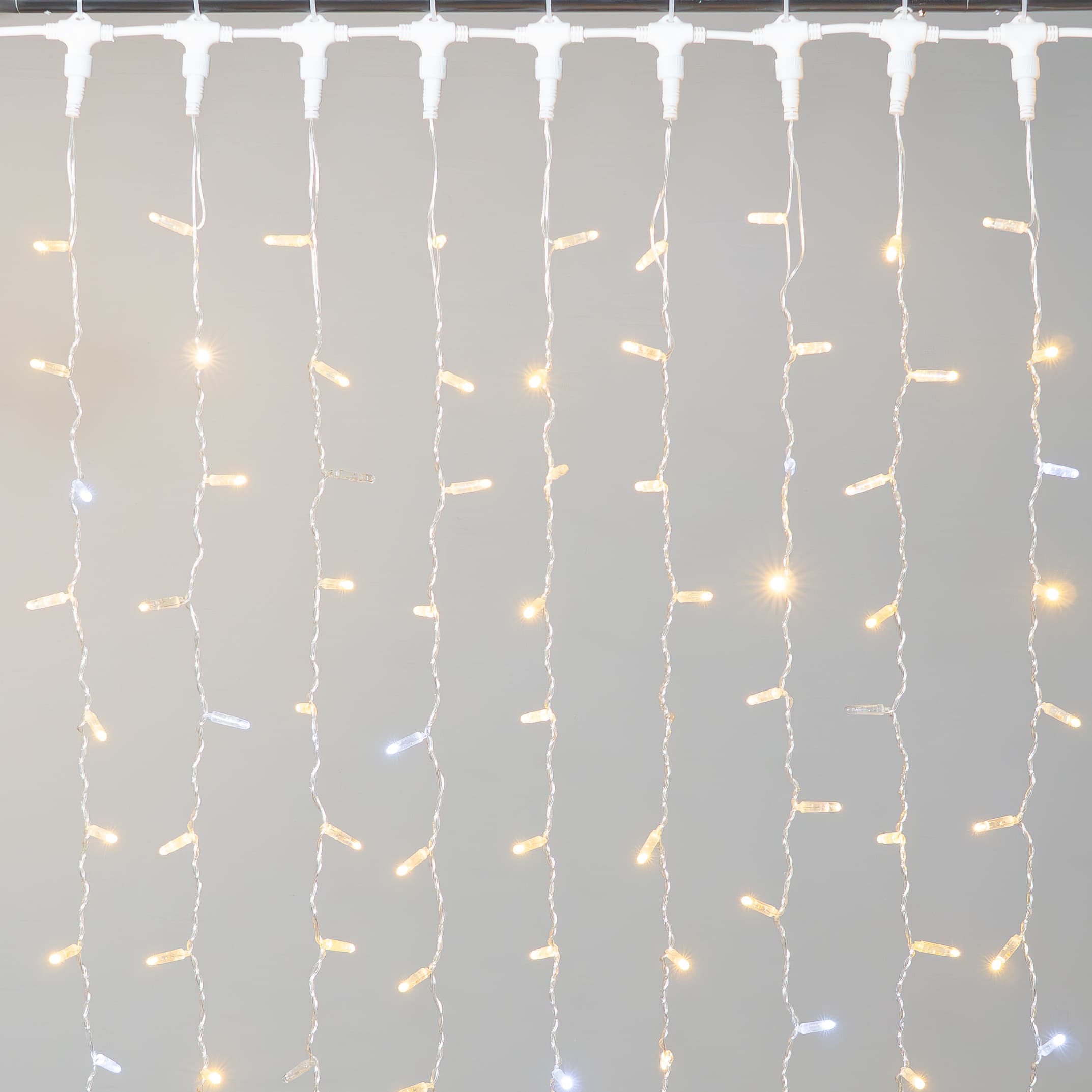 Купить "Гирлянда Занавес с Колпачком 2 x 3 м Тепло-Белый с Мерцанием Белого Диода 220В, 600 LED, Провод Прозрачный ПВХ, IP65 LTC PCL602BLWCAP-10-2WW"