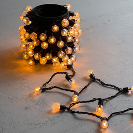Гирлянда «Шарики» 10м Желтая 220В, Диаметр Шарика 23мм, 100 LED, Провод Черный Каучук 2,3мм, IP54 LTC PCS-100B-Y