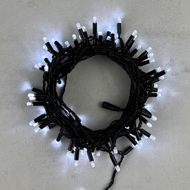 Гирлянда Нить с Колпачком 10м Белая 220В, 100 LED, Провод Черный ПВХ, IP65 LTC PST100CAP-11-2W