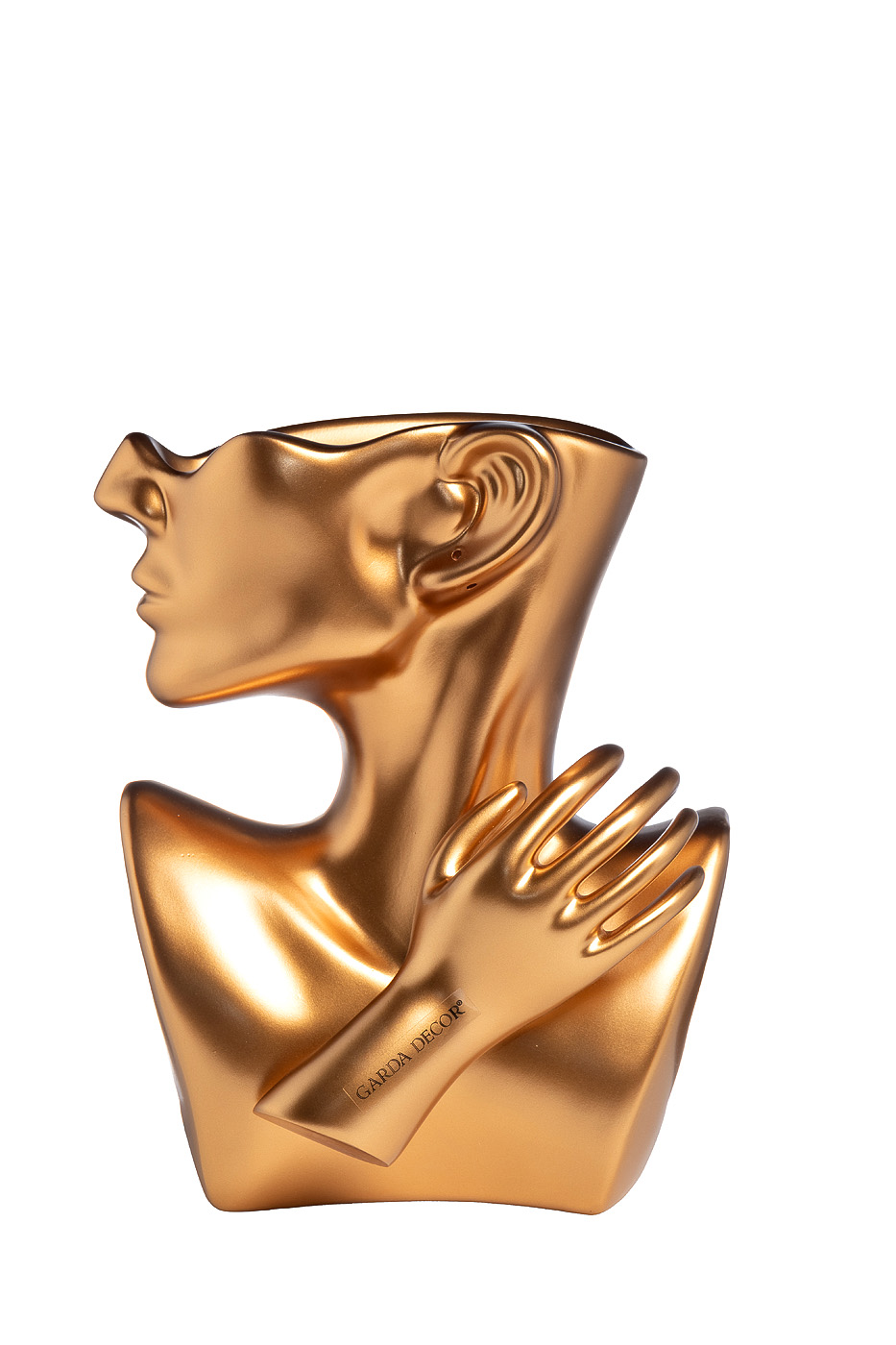 Эффектная и стильная подставка для цветов от Garda Decor выполнена в золотистом оттенке. Кашпо имитирует изящный женский силуэт, что придает ему оригинальности. Плавные линии очерчивают изгибы хрупкого тела, а нежная ручка с тонким запястьем завершает диз...