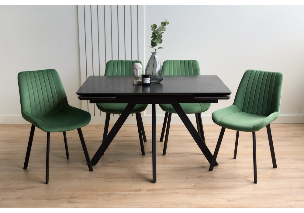 Материал каркаса - металл; Материал столешницы - Керамика; Цвет ножек - черный; Ширина - 80; Высота - 75; Длина стола в разложенном виде - 180; Длина - 120;