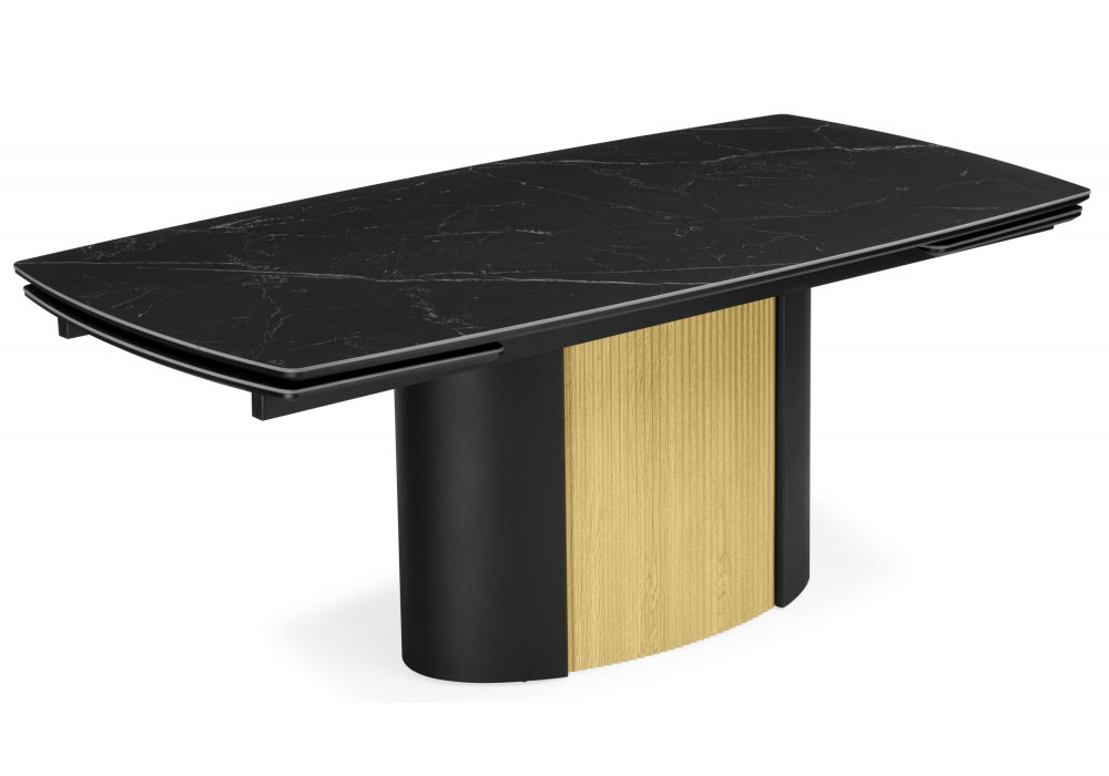 Керамический стол раскладной 180(220)x90 Woodville Бовер черный мрамор дуб натуральный 631623 в Ялте