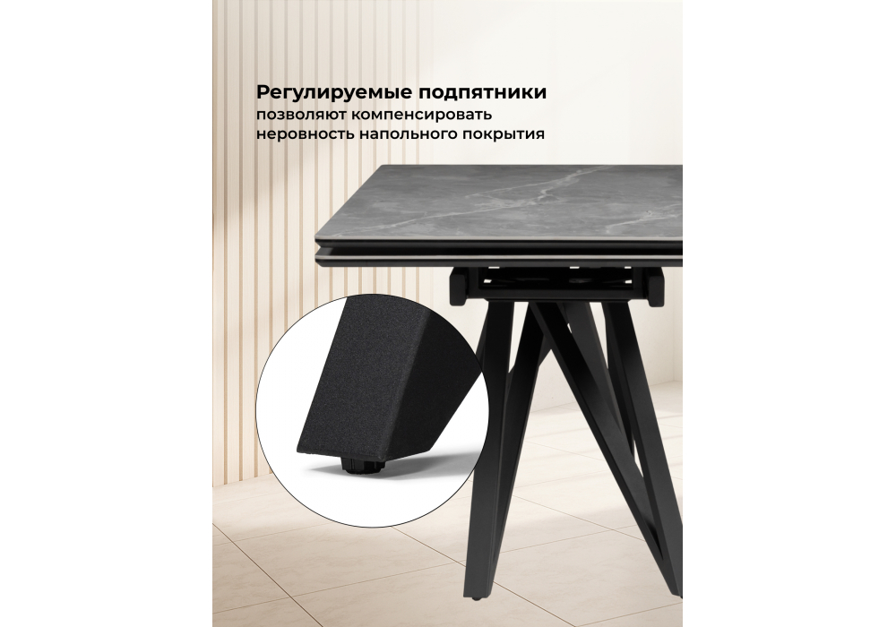 Керамический стол раскладной Woodville Вилсон 140(200)х80 серый мрамор larka grey / черный 625959 в Ялте