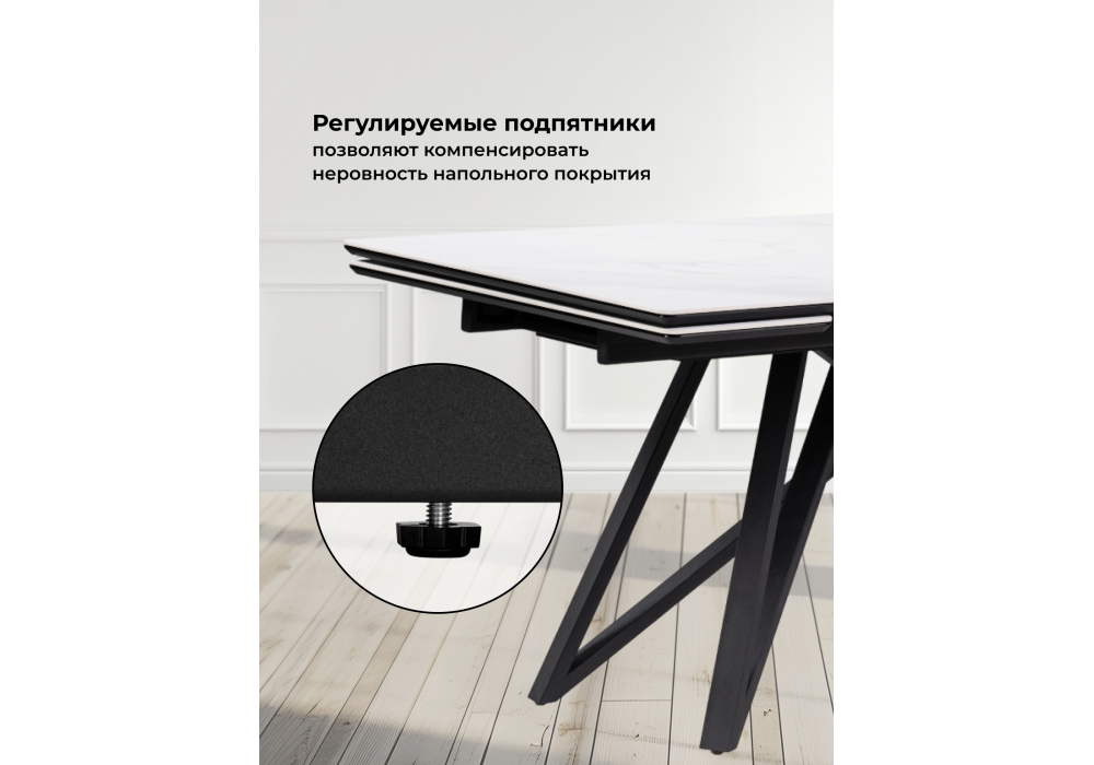 Материал каркаса - металл; Материал столешницы - Керамика; Цвет ножек - черный; Ширина - 89; Высота - 75; Длина стола в разложенном виде - 220; Длина - 160;
