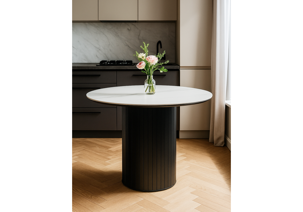 Керамический стол Woodville Гравент 90 белый мрамор snow white / черный 625917 в Ялте