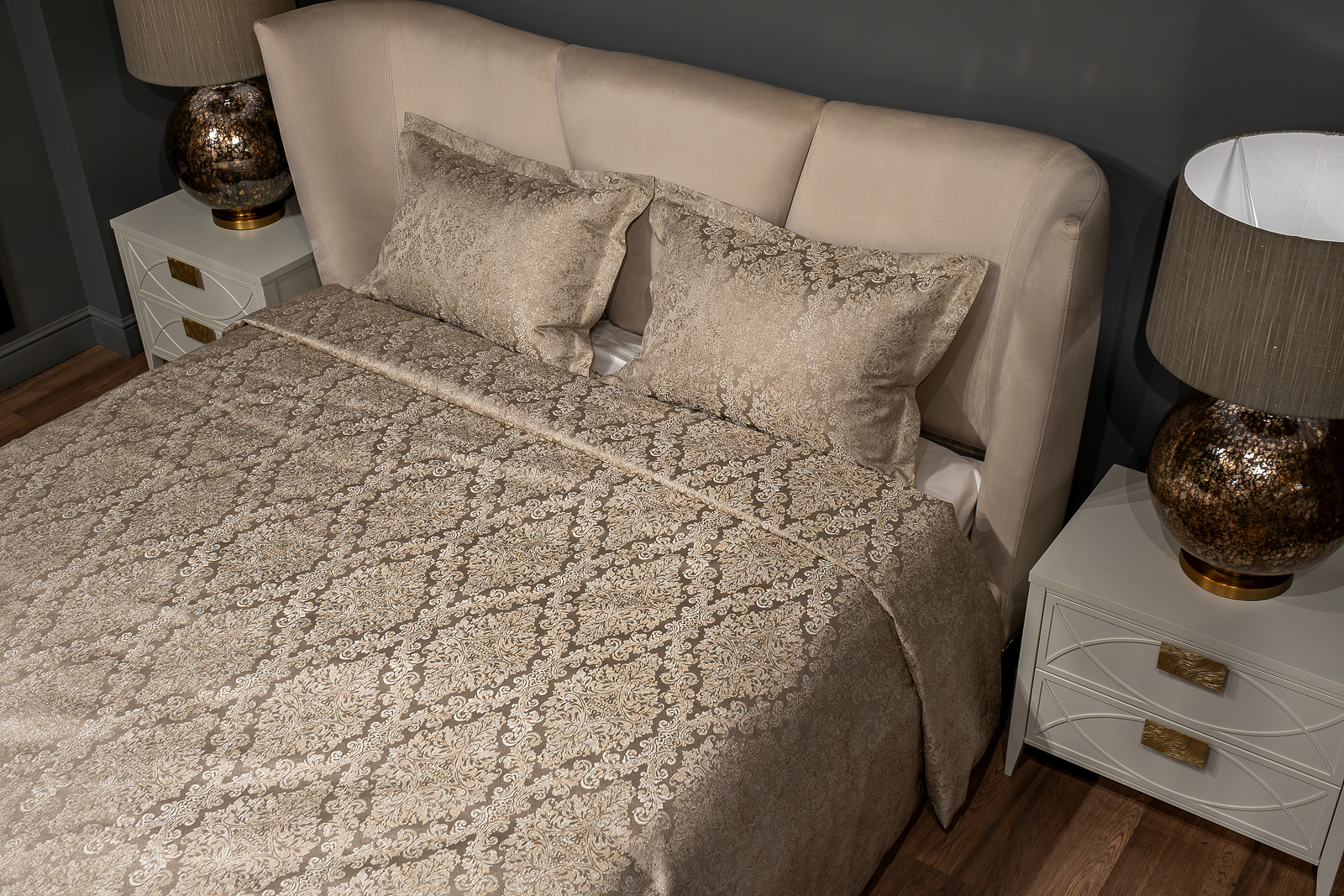 Комплект, жаккардовое покрывало Emotion 260*260 + 2 наволочки 50*70, выполнен из ткани с классическим рисунком, с точечной стежкой, придающей объем и уникальность данному изделию. Этот изящный орнамент был специально разработан дизайнером по текстилю Garda Decor. Изделие с таким рисунком подходит для интерьеров, как в классических, так и в современных направлениях, и служит ярким акцентом, притягивающим взгляд. Покрывала изготовлены из прочного полиэстера. Ткани из полиэфирных волокон практически не выгорают на солнце, просты в уходе. Изделие представлено в сером цвете. УХОД: Деликатная машинная стирка при температуре не выше 30 градусов. Отбеливание запрещено. Гладить при средней температуре до 150 градусов. Разрешена сухая химчистка. Разрешена низкотемпературная машинная сушка.