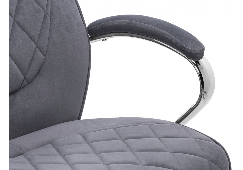 Высота подлокотников: 70 - 78 см. Материал каркаса - Хромированный металл; Материал сиденья - Велюр; Материал ножек - Хромированный металл; Материал обивки - Велюр; Цвет каркаса - Хромированный металл; Цвет сиденья - Серый; Цвет ножек - Хромированный металл; Цвет обивки - Серый; Ширина - 65; Глубина - 72; Высота - 117; Ширина сиденья - 54; Глубина сиденья - 49; Высота сиденья - 45; Высота сиденья максимальная - 53; Высота максимальная - 125;