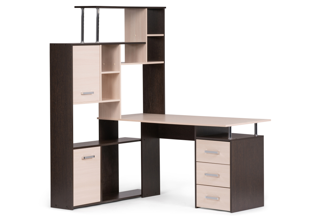 Высота до столешницы: 75 см. Материал каркаса - ЛДСП; Материал столешницы - ЛДСП; Цвет каркаса - Венге / дуб молочный; Цвет столешницы - Венге / дуб молочный; Глубина - 130; Высота - 175,2; Длина - 142,7;