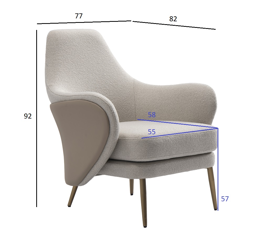 Кресло Selvino из искусственного меха — эффектное сочетание уюта и графичной элегантности. Мягкая ворсистая обивка словно окутывает теплом, приглашая к неспешному отдыху, а вставки из экокожи подчёркивают скульптурную форму и добавляют образу статусности. Комфорт посадки обеспечивается за счёт продуманной формы сиденья и плавной спинки, что делает кресло Selvino идеальным для гостиной, спальни или зоны чтения. Этот дизайнерский акцент легко интегрируется в современные обстановки, придавая ощущение продуманной роскоши и тактильного удовольствия. Обивка - светлый искусственный мех с фактурой овчины, спинка декорирована бежевой экокожей. Ножки - нерж.сталь, цвет матовое золото. Габариты сиденья: ширина - 55см, глубина - 58см, высота от пола - 57см.