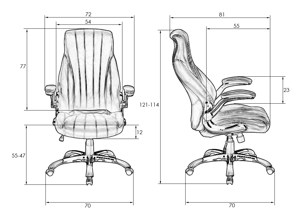 - Ширина сиденья: 540 мм
