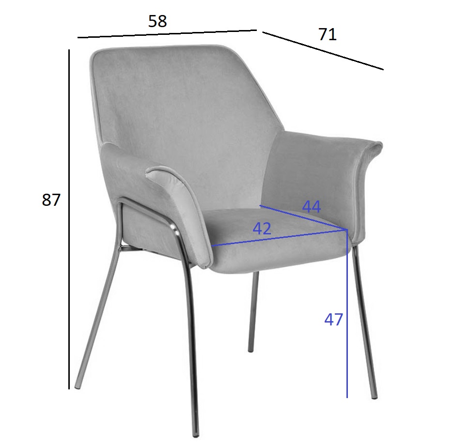 Велюр относится к категории обивочных тканей премиум-класса. Кресло из велюра идеально впишется в любой стильный и роскошный интерьер, создавая уют и комфорт. Купить кресло в гостиную с велюровой обивкой - значит приобрести предмет приятный на ощупь и изысканный в своем исполнении. Светло-серое кресло будет сочетаться с любыми другими цветовыми решениями в помещении. Велюровая обивка сочетает в себе элементы классики и современности, комфорта и роскоши. Этот мягкий материал практичен и долговечен. Сиденье: ширина 42, глубина 44, высота 47см.