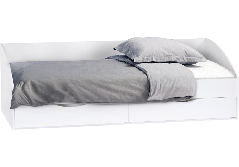Материал каркаса - ЛДСП; Ортопедическое основание - в комплекте; Материал ортопедического основания - настил; Цвет каркаса - Белый; Ширина - 95; Глубина - 203,2; Высота - 90; Размер спального места - 90 х 200; Высота изножья - 65; Высота изголовья - 65;