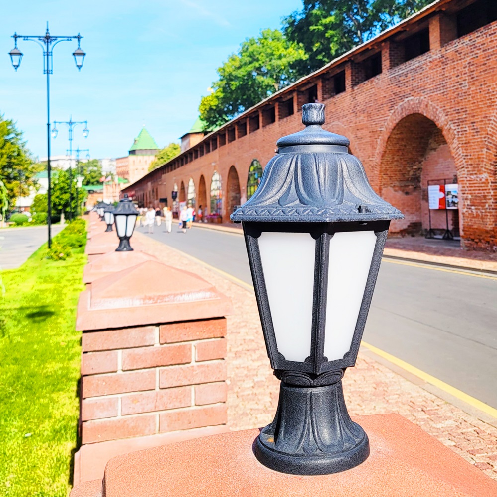 Ландшафтные фонари FUMAGALLI серии ANNA, модель ANNA/MIKROILOT. Столбик MIKROILOT с уличным фонарем ANNA. Используются для архитектурного и ландшафтного освещения в стиле "классика". Место установки уличных светильников - перила лестниц, столбы заборов, колонны, тумбы, подпорные стенки, стилобаты, ландшафтные композиции в парках и скверах. В общем, там, где светильник находится на каком-то возвышении, тумбе или подиуме. Изготовлены в Италии, по уникальным технологиям "FUMAGALLI" из современного композитного полимера RESIN. Этот материал в 5 раз прочнее металла, не ржавеет, не окисляется, не выгорает на солнце, его не нужно красить. Все светильники пыле-влаго защищены по стандарту IP55 (защита от пыли, защита от струй воды, падающих под любым углом). Рассеиватель выполнен из антивандального, не мутнеющего и не горючего PMMA (ПолиМетилМетаАкрилат). Срок службы светильника - не менее 20 лет. Температура использования от -60 до +90. В серии ANNA есть фонари в настенном (BISSO/ANNA, PORPORA/ANNA) подвесном (SICHEM/ANNA, SICHEM/ANNA 3L) и наземном исполнении (IAFAET.R/ANNA, ALOE.R/ANNA, ARTU/ANNA, GIGI/ANNA, RICU/ANNA, RICU/ISSO/ANNA 1L, RICU/ISSO/ANNA 2L, RICU/ISSO/ANNA 3L) со столбами разной высоты, с разным количеством и конфигурацией голов. Консоли настенных фонарей и кронштейны светильников на столбах освщения могут устанавливаться вверх/вниз. Столбы выше 150 см имеют в основе мощную стальную трубу с двойной оцинковкой. При заказе требуется выбрать цвет корпуса, цвет плафона и тип патрона (Е-27 или LED GX-53). Возможен светодиодный вариант. По стилю и дизайну серия уличных светильников ANNA похожа на светильники среднего размера серии RUT и на светильники большого размера серии NOEMI. По размеру ANNA относится к малым светильникам как серия SABA и GLOBE 250.