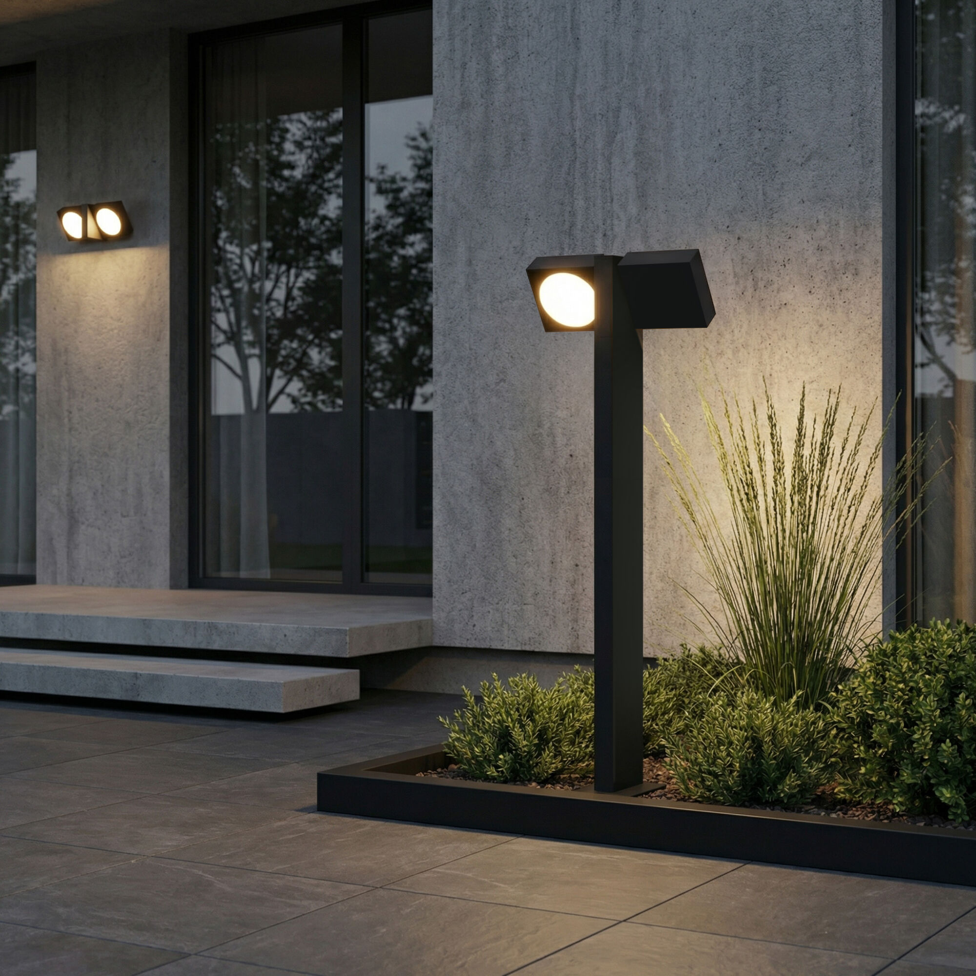 Коллекция уличных светильников Twin - стильное и современное решение для тех, кто ценит комфорт и функциональность. Лаконичная форма и строгие линии светильников идеально впишутся в любой ландшафтный дизайн, от классического до современного. Мягкое, рассеянное освещение создает уютную атмосферу и подчеркивает красоту окружающего пространства, а также обеспечивает безопасное передвижение в темное время суток. Благодаря поворотному плафону, свет можно направить на необходимые участки, будь то: дорожки, растения или элементы декора вашего сада. Светильники устойчивы к воздействию окружающей среды и прослужат вам долгие годы.