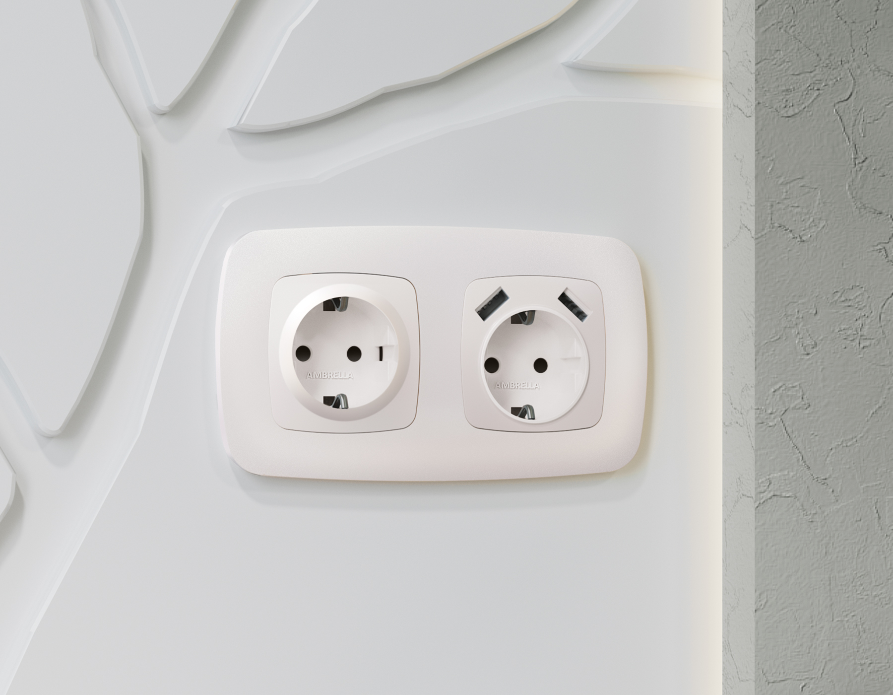 Купить "Лицевая панель для розетки со шторками 2USB A+A Ambrella Volt Quant OMEGA OP2090"